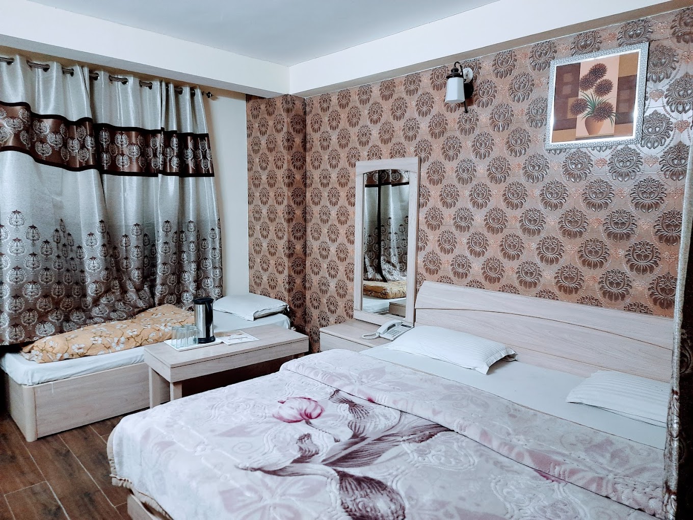 The hotel offers a range of convenient amenities, including a doctor on call, reception service, standby generator, car rental, travel desk, newspapers, and power backup. Rooms come equipped with cable TV, room service, hot/cold water, a telephone, and essential toiletries in the attached bathrooms.